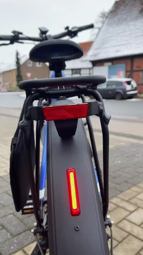 Curana Schutzbleche, ein MIK Gepäckträger und das "Brötchenschloss" runden die Ausstattung dieses Komfort-Allrounders ab. Für die Straßenverkehrstauglichkeit sorgen die Reflexstreifen an den Reifen sowie die Beleuchtung. Vorn leuchten dir kräftige 80 Lux den Weg nach Hause. Hinten ist das Rad für das Extra an Sicherheit mit einem Rücklicht plus Stopplichtfunktion ausgestattet. So können nachfolgende Radfahrer besser auf spontane Bremsmanöver reagieren, die durch den Stadtverkehr oftmals nicht ausbleiben.